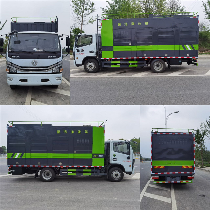 污水凈化車主要采用東風多利卡、大運奧普力、江淮康鈴、江淮駿鈴、江鈴順達、重汽豪沃、東風天錦,東風專底等國六底盤改裝而成,裝有發電機組、高壓清洗泵和卷盤、污水分離箱、疊螺脫水機等設備。可將化糞池的污物抽入車中進行渣水分離,由脫水系統將糞渣凝結脫水,從而排出清水,并將糞便壓榨成餅狀當有機肥使用。這種車輛可以同時抽排并進行污水凈化,效率遠遠高于清洗吸污車。