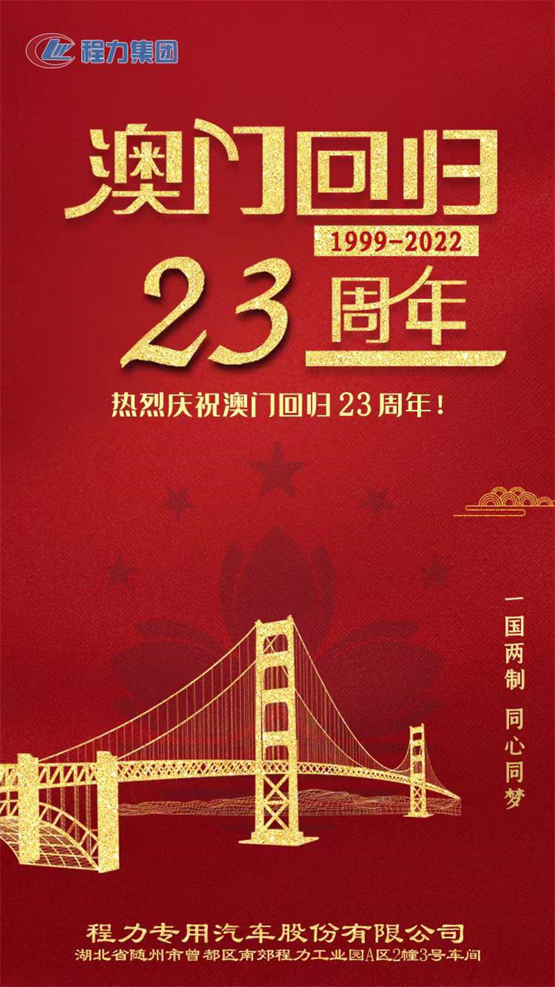 百年滄桑,風雨洗禮,一朝回歸,萬民歡慶,程力集團熱烈祝賀澳門回歸23周年,祝福偉大祖國繁榮富強。