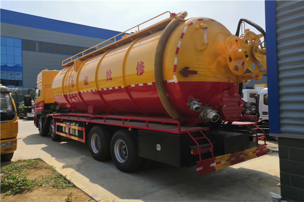 聯合疏通車具有自動到達人力所不能到達下水道堵塞區域,形成高壓沖洗、結合吸污減少液面對高壓沖洗的緩沖作用力,更好的達到疏通的目的,高壓清洗管道加裝專用銑頭,可以清理下水道樹根等障礙物,從而順利到達堵塞區域。