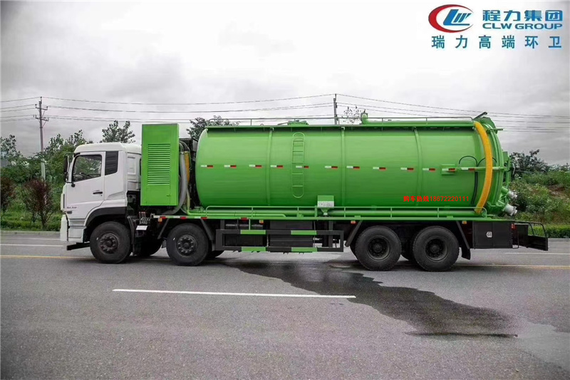 這款發往廣東的東風天龍吸污車配置為:程力威高壓清洗吸污車,底盤型號:DFL1250A13,東風公司原裝底盤,新款駕駛室,法士特8檔變速箱,7T前橋,10T后雙橋,輪胎為11.00鋼絲胎,康機270發動機,正宗國六排放標準。