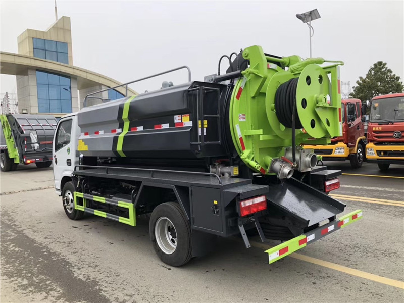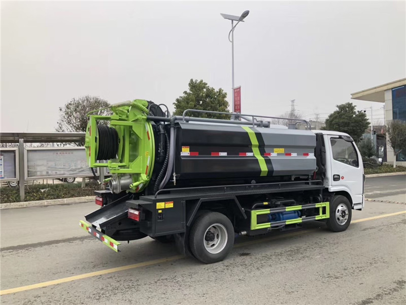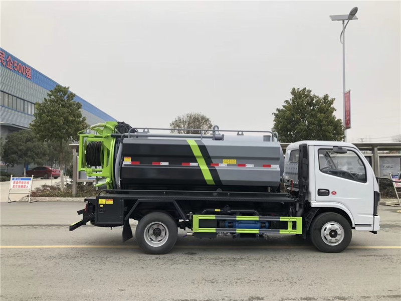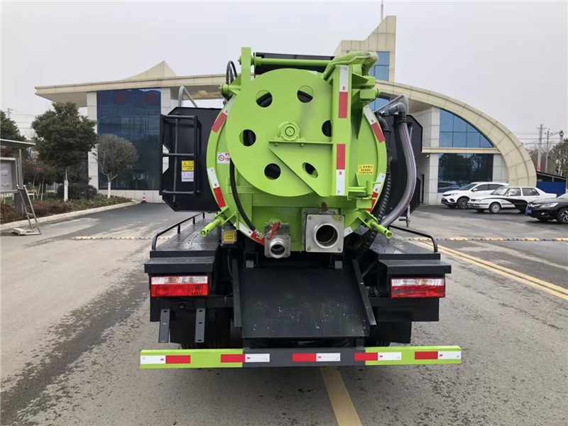 該清洗吸污車整車看上去相比普通東風更加的豪華高檔,適合城市環衛使用。目前我廠生產的這種專用車的清洗泵主要是以進口的為主,因為進口泵雖然壓力沒有國產泵的高,但是進口泵的工作性能更加的穩定。進口泵的壓力是12-16兆帕,國產泵的壓力是12-20兆帕,每車尾部安裝有洗管器或者是無縫管清洗高壓管。