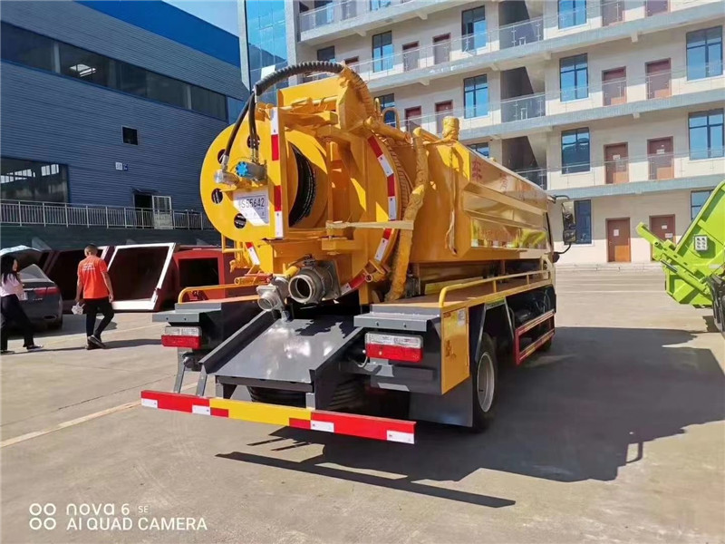 清洗吸污車兩邊清水箱容積2立方,采用武鋼優(yōu)質(zhì)鋼板制作,壁厚4個(gè)厚,兩倉(cāng)互通,兩邊清水箱安裝低位排水排渣口,水箱頂部帶兩個(gè)DN100的換氣口(也可當(dāng)加水口使用)