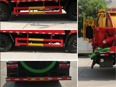 該車裝有取力器,高壓水泵,高壓水管,高壓泵頭,真空吸污泵以及水罐,吸污罐,用于清洗和吸污;水罐罐體有效容積:3.6立方米,罐體外形尺寸(長×直徑)(mm):2100×1550;吸污罐罐體有效容積:4.8立方米,罐體外形尺寸(長×直徑)(mm):2800×1550; 水罐和吸污罐為兩個獨立罐體,兩罐不能同時滿載.防護材料:Q235A碳鋼,連接方式:左右側面采用焊接連接,后下部防護采用焊接連接,后部防護斷面尺寸(mm):100×50,后部防護離地高度(mm):400.ABS型號/廠家:ABS型號:ABS/ASR-24V-4S/4M,廠家:襄陽東風隆誠機械有限責任公司,隨底盤選裝駕駛室.