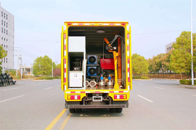 該車(chē)主要用作市政搶修,管道維護(hù),抗洪排澇,應(yīng)急供電等應(yīng)急搶修作業(yè)。該車(chē)設(shè)備全部由液壓驅(qū)動(dòng),安全可靠,避免帶電水下作業(yè)中有可能引起的安全事故。車(chē)載主要設(shè)備有1、30L液壓抓斗;2、500kg液壓吊機(jī);3、350L液壓空壓機(jī);4、380/220V液壓發(fā)電機(jī);5、4寸液壓渣漿泵2套;6、8寸500m3/小時(shí)液壓排澇泵2套。另外可裝載管道機(jī)器人,管道光固化等設(shè)備。
