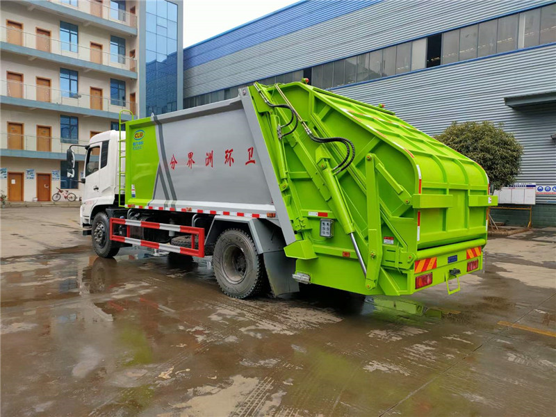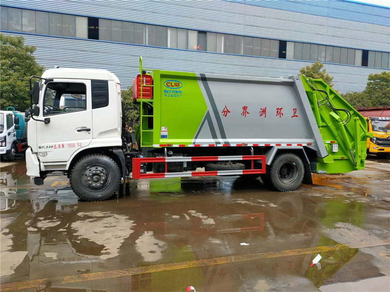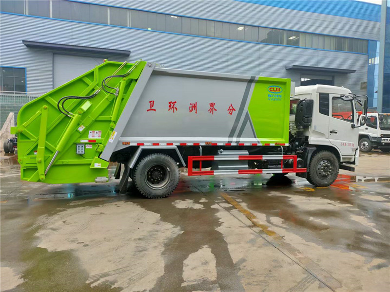 程力汽車東風天錦14立方壓縮垃圾車,康機230馬力發動機,陜齒八擋變速箱,1000鋼絲胎,箱體容積14立方,采用Q345錳鋼制作,邊板4mm底板5mm,配套福建銀華油缸,液壓油先導過濾器,中梅多路閥,皖液雙聯油泵,帶背壓閥,尾部大落地斗翻轉機構。廣東壓縮垃圾車,茂名壓縮垃圾車廠家、陽江壓縮垃圾車廠家。