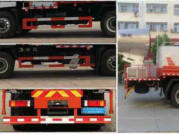 專用裝置為抑塵霧炮,用于城市抑塵.整車長/前懸/軸距/后懸對應關系為(mm):11125/1475/4350+1350/3400,11525/1475/4750+1350/3400,11900/1475/5900+1350/2625,11125/1515/4350+1350/3360,11525/1515/4750+1350/3360,11900/1515/5900+1350/2585.此車前伸(mm):550.防護材料:Q235A碳鋼,連接方式:左右側面及后部防護均采用焊接連接,后部防護斷面尺寸(mm):150×50,后部防護離地高度(mm):470.ABS生產廠家;東科克諾爾商用車制動系統(十堰)有限公司, 浙江萬安科技股份有限公司,型號:3631010-C2000, VIE ABS-Ⅱ.隨底盤選裝駕駛室.