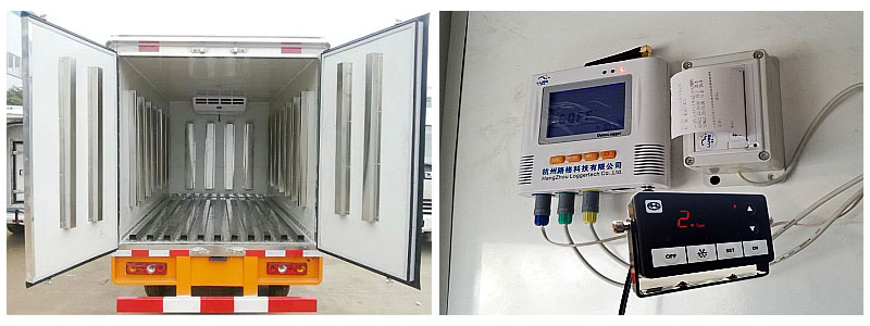 四、選裝配置:導軌肉鉤、T型通風槽、右側開側門、溫度實時監控帶打印裝置、裝海鮮廂體內部面料必須選裝不銹鋼制造、可選裝12V-24V外接電源(車輛在停止時,廂體通過外接電源進行制冷)。