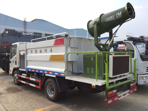 1、基本配置:水罐容積4立方米、常規最大配備CLW-50噴霧炮射程達25-30米、配套7.5KW汽油發電機、前沖后灑、側噴、平臺高炮、自流閥及消防接頭各1個、水管2根、8T以上高位花灑2個,標配億豐泵或金龍泵。