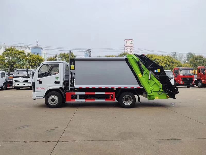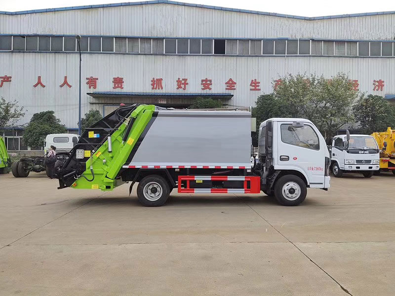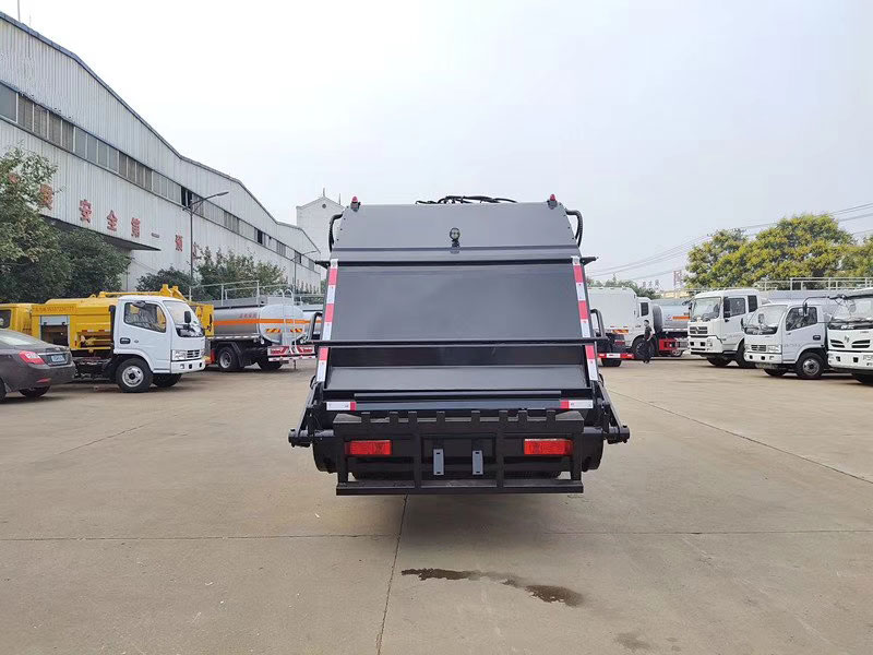 上裝配置:弧形箱體,容積約6立方,可裝垃圾4.5噸,采用特種鋼板制作,箱體底板4mm,邊板4mm,廈門銀華油缸,鴻輝多路閥,長源液壓油泵,填裝器舉升油缸帶雙向平衡閥,采用進口西門子PLC電控系統(采用光電開關,帶一鍵操作,和手動操作兩種控制方式),電控操作盒三只(駕駛室內部及后尾部左右兩側可操作)。帶2個污水收集箱,尾部帶橡膠密封條。填充器上方安裝一個工作照明燈,箱體油漆及噴字按用戶要求定制。