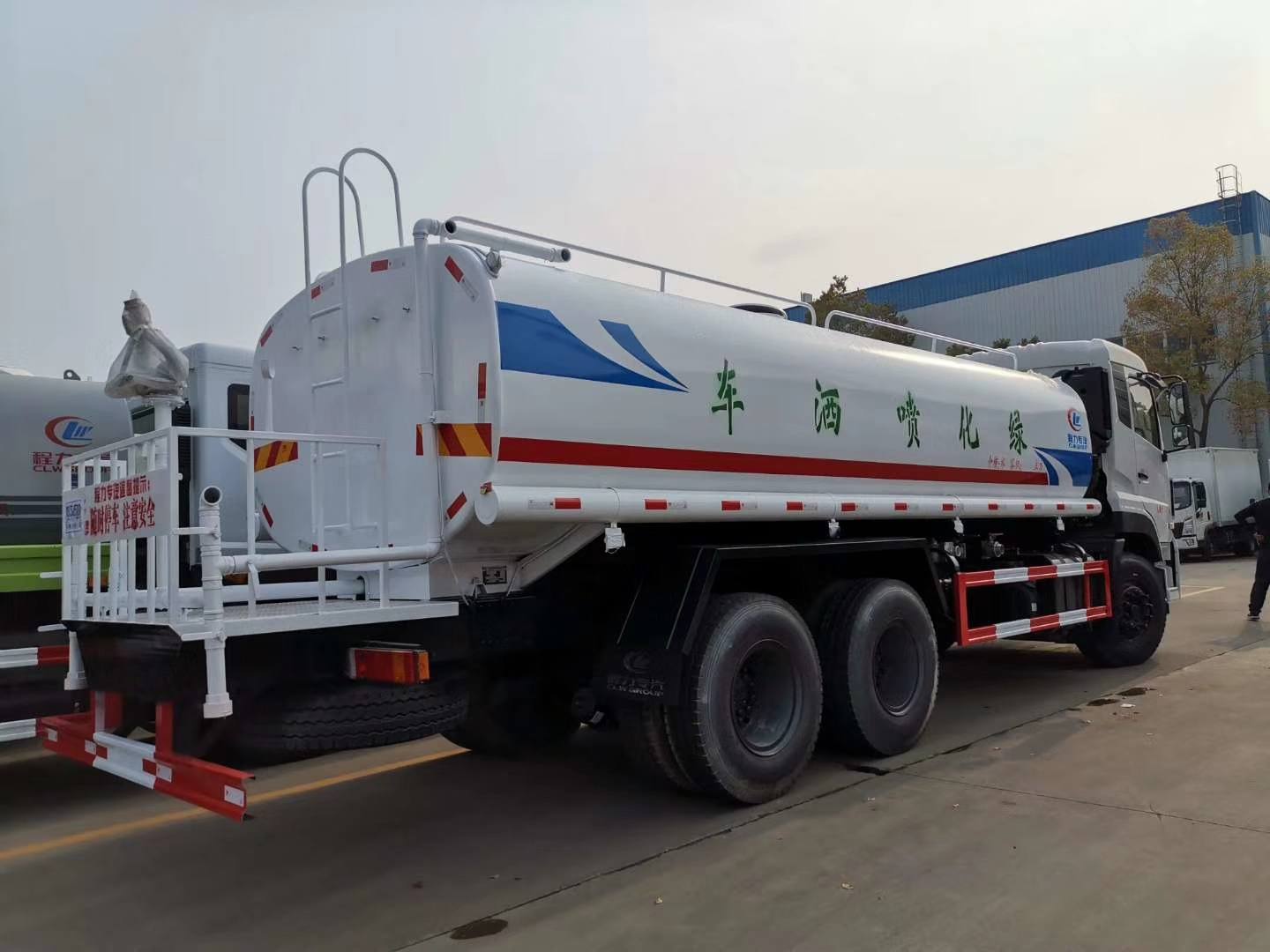 罐體實(shí)際容積20m3,采用Q235碳鋼板制作,5mm厚,封頭6mm厚,內(nèi)部隔浪板,防止罐體內(nèi)液體在緊急剎車或快速起步等運(yùn)動(dòng)中對(duì)封頭產(chǎn)生沖擊,引發(fā)危險(xiǎn)配罐口蓋,帶后爬梯;管道及球閥;帶泵,80QZ-60/90自吸式水泵,流量為60m3/h,揚(yáng)程為90米,垂直吸程為10米,配備消防接口,可在消防接口取水,放水方式有兩種,自流口自排和泵加壓排水,帶兩根橡膠軟水管,快速接口。整車顏色為上白下藍(lán)本色,駕駛室顏色有紅色和白色可選,罐體顏色可按客戶要求噴色或貼印圖案Logo。