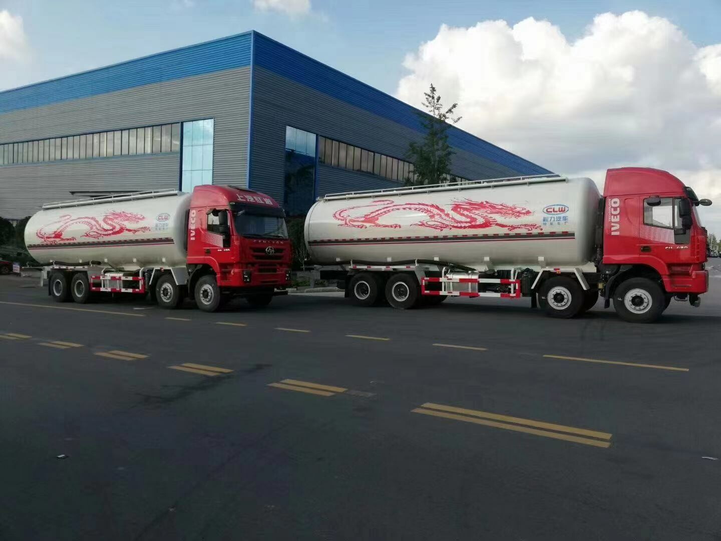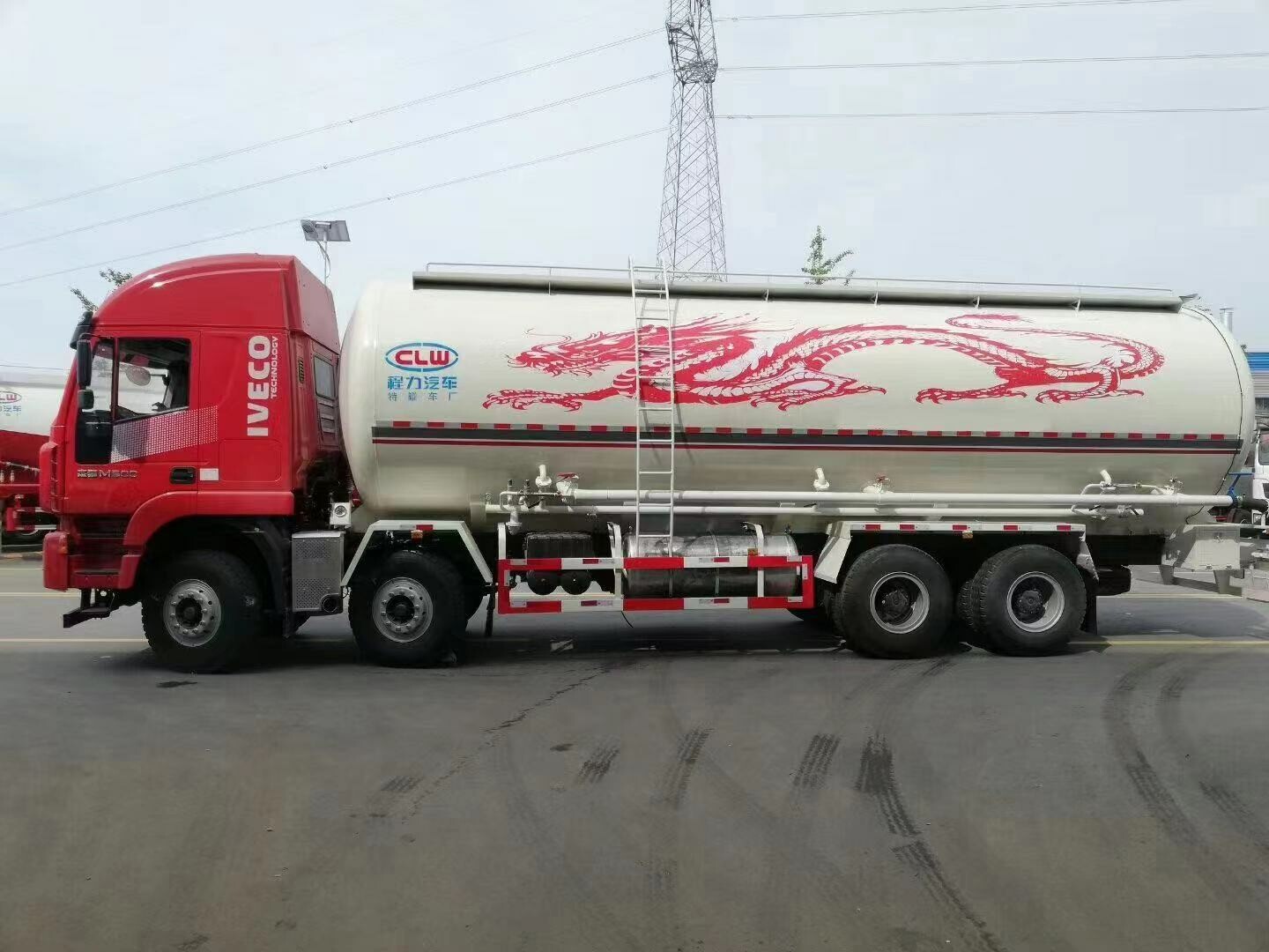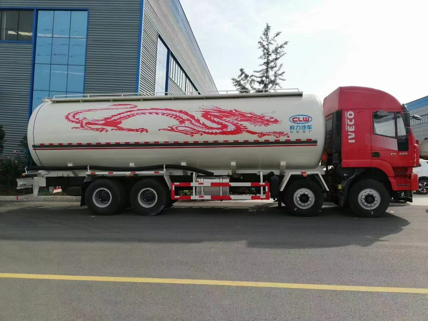 底盤采用上汽紅巖M500平頂駕駛室,上汽菲亞特紅巖動力總成有限公司430馬力國五發動機,缸內制動技術,法士特12檔變速箱,軸距2025+4375+1400,300直通三層車架,雙前橋7.5噸,雙后橋16噸輪減橋,12.00R20鋼絲胎,同步歐洲技術,高端品質。低密度粉粒物料運輸車由專用車底盤、散裝水泥車罐體、氣管路系統、自動卸貨裝置等部分組成。適用于粉煤灰、水泥、干混砂漿、石灰粉、礦石粉、顆粒堿等無化學反應,比重不超過1.8  ,顆粒直徑不大于0.1mm粉粒干燥物料的散裝運輸。主要供水泥廠、水泥倉庫、干混砂漿站、大型建筑工地使用,可節約大量包裝材料和裝卸勞動。罐體容積:36.4方,罐體4個厚,封頭5個厚,三倉三罐口,耐高溫球閥,帶壓力表,10方空壓機,8米卸料管,鋁合金延邊渤海12.5方空壓機,立式空壓機,半掛使用。