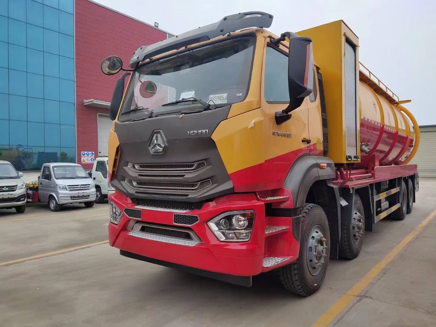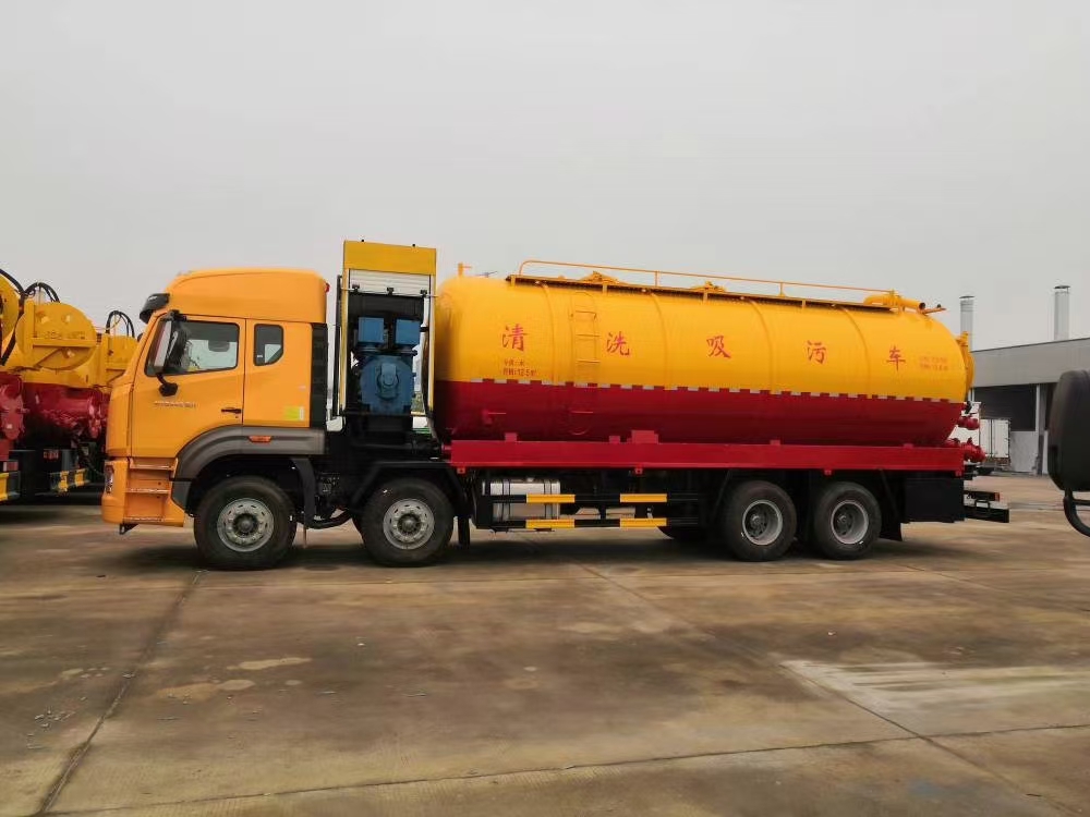 上裝配置:罐體總容積33立方,清水箱約10立方,其余為污水罐,(可自由分配)兩倉互通,采用8mm碳鋼制作,吸污部分,副發采用濰柴420馬力,258水循環泵,8米吸污管2根,罐體兩側加寬平臺加護欄,后部開一個600mm液壓開啟排污口,一個150mm排污球閥,和一個100的排污球閥,100的內抽球閥,偷排150球閥,后部左右各一個箭頭燈,配通結350流量,配100米內徑25高壓管,帶卷盤,卷盤液壓左右旋轉,配9公斤槍頭一個。