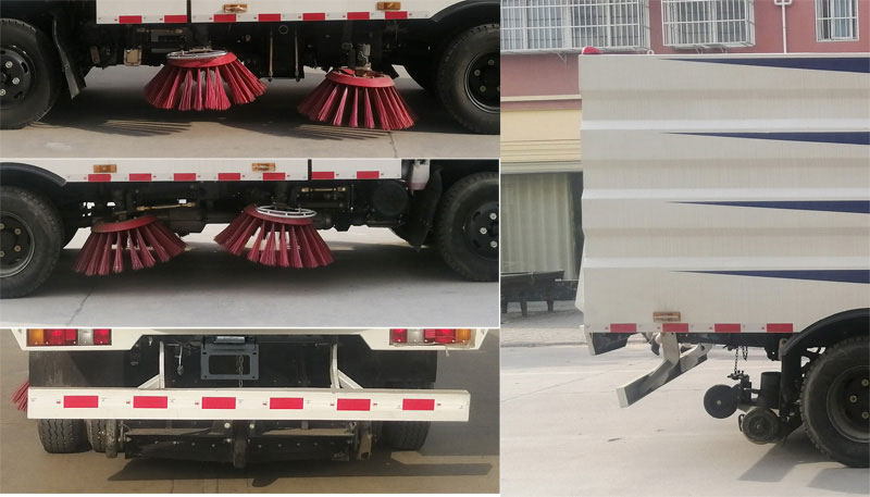 該車主要用于路面的機(jī)械化清掃作業(yè);專用裝置為掃刷;防護(hù)材料:Q235B碳鋼,連接方式:左右側(cè)面防護(hù)裝置由專用裝置代替;后下部防護(hù)裝置與大梁螺栓連接,后部防護(hù)斷面尺寸(mm):120×50,后部防護(hù)離地高度(mm):380;上裝選裝新型外形樣式;ABS系統(tǒng)型號:VIE ABS-II,ABS系統(tǒng)生產(chǎn)廠家:浙江萬安科技股份有限公司.