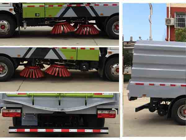 此車為道路洗掃專用車輛,專用裝置為掃刷.防護材料:Q235A碳鋼,連接方式:左右側面防護為掃刷,離地高為(mm):200,后下部防護與車架采用焊接連接,后下部防護尺寸:50×120(mm),離地面高度350mm.隨底盤選裝駕駛室.ABS型號:ABS/ASR-24V-4S/4M,ABS型號廠家:襄陽東風隆誠機械有限責任公司.整車長/軸距對應關系為(mm):6500/3600,6700/3800,6850/3950,6950/4050,7000/4100,7300/4400.