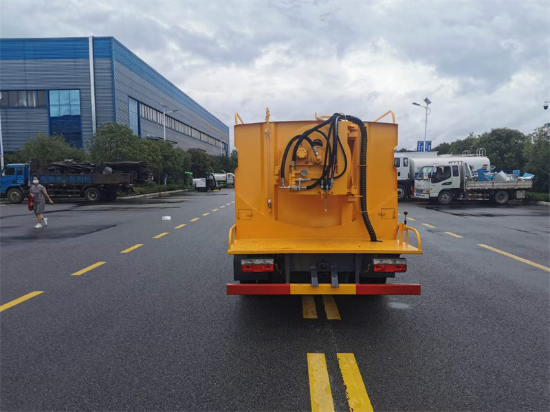 上裝配置:1.水罐采用武鋼優(yōu)質(zhì)鋼板制作,壁厚4個厚,罐體中間合理設(shè)計防浪板,罐體上面設(shè)計檢查人孔,也當(dāng)可加水孔用,帶水位量管帶洗手裝置,2.水箱進(jìn)水口為球閥式消防栓(方便開關(guān),經(jīng)久耐用),帶消防接口,帶低水位排水口,3.高壓泵采用德國品孚170L型號,24兆帕壓力,安裝自主研發(fā)大型過濾器(防止雜質(zhì)進(jìn)泵,過濾器免拆洗),帶氣吹水功能(冬季可把高壓泵,高壓管的水吹干凈,防止凍壞),4.后高壓卷盤液壓放管收管,帶淋管功能(高壓管作業(yè)后,往回收時,可以沖洗高壓管),5.操作系統(tǒng)排列整齊,均有操作說明及注意事項,液壓管路重要部分采用高強(qiáng)度鋼管,堅固耐用,6.帶2個工具箱,帶卷簾門(方便高壓泵保養(yǎng)檢修)7車輛采用鍍鋅防護(hù)網(wǎng),花紋防滑護(hù)欄(美觀耐用).