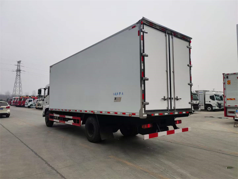 出口東風天錦冷藏車,天錦單橋7.8米冷藏車,斷橋隔熱工藝,聚氨酯底板和通風槽一體成型,底板承重更強,提質不提價.