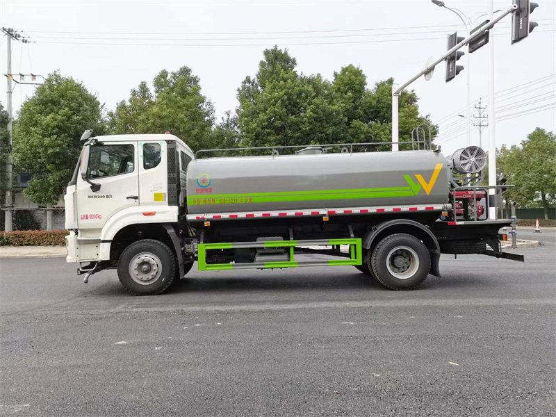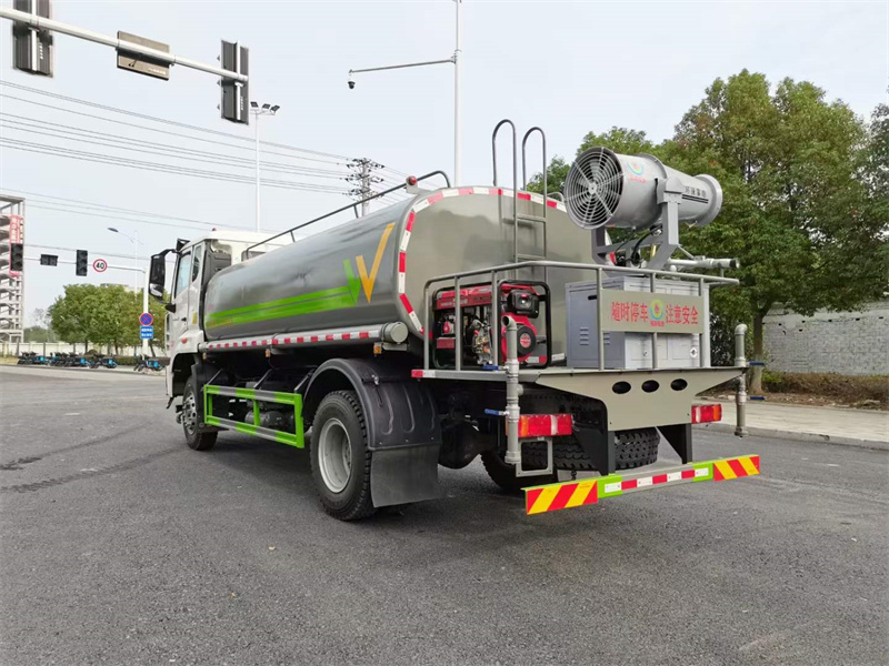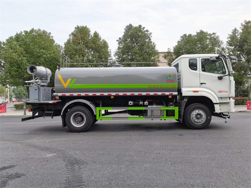 》上裝配置: 方型罐體, 容積13方, 高效遠程霧炮系統, 大功率專用自吸自排水泵, 中低壓沖洗灑水系統, 帶前部沖洗路面噴灑裝置, 兩側面噴灑裝置, 帶后部工作平臺, 平臺上安裝綠化灑水炮(炮噴射形狀可調),可調直沖狀、大雨、中雨、毛毛雨,可連續調節, 射程可達28米, 垂直吸程≤7米, 另加裝高效率車載式風送噴霧機, 噴藥炮霧化效果好, 可遠程噴霧。帶消防接口,自流閥,可自吸自排。