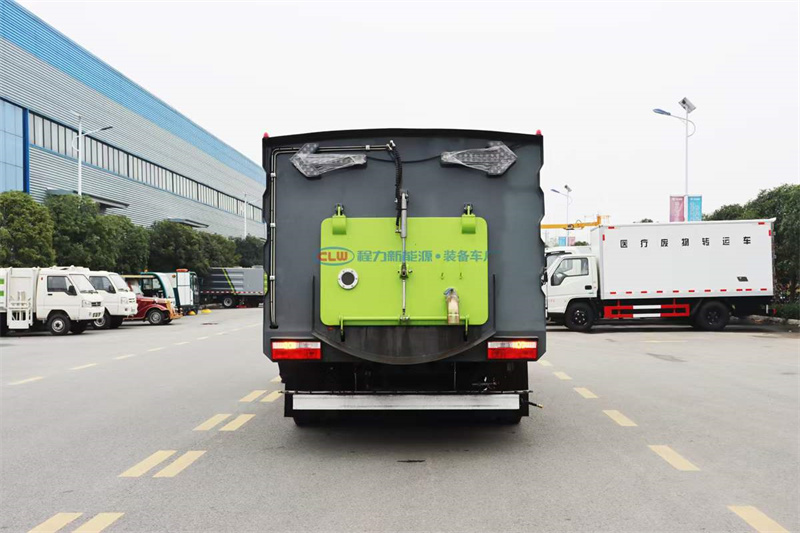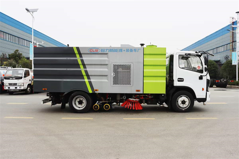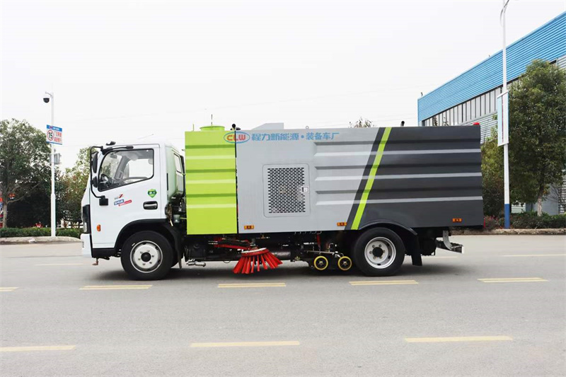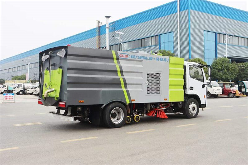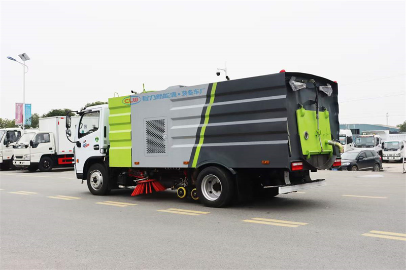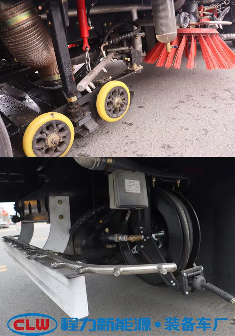 國六東風大多利卡9方洗掃車,整車型號:CL5120TXS6GH型洗掃車,4方水箱/5方塵箱,底盤可選玉柴165馬力和云內150馬力發動機,3800mm軸距,康機140馬力副機,力沃馬達,高壓水泵(前沖、側噴、中噴、后噴霧、垃圾箱自潔),不銹鋼垃圾箱,帶舉升自卸,尾部LED箭頭燈。