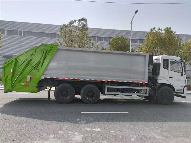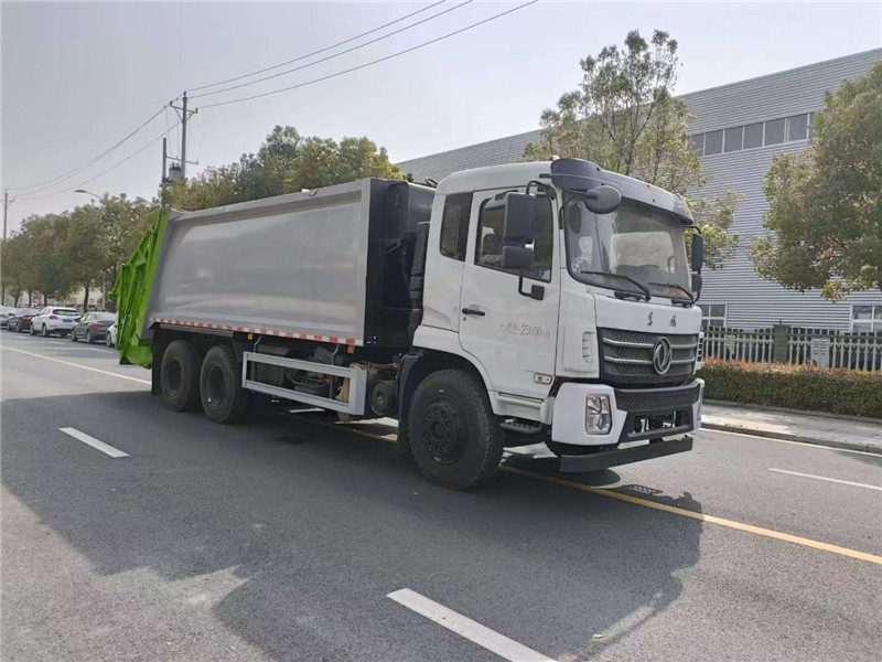 東風商用20方壓縮垃圾車由程力壓縮垃圾車生產廠家研發制造。此款壓縮垃圾車帶大落地斗,防止垃圾外泄。