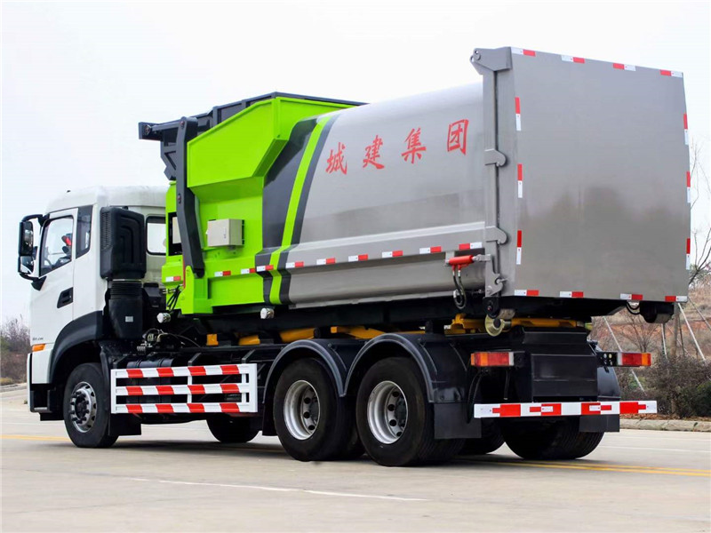 20方東風(fēng)天龍后雙橋套臂垃圾車屬于鉤臂垃圾車中的一種。