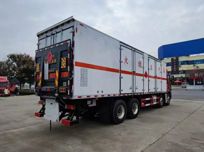 當前位置: 首頁> 爆破器材運輸車|防爆車|煙花爆竹運輸車 > 國六?解放8*4危險品廂式車