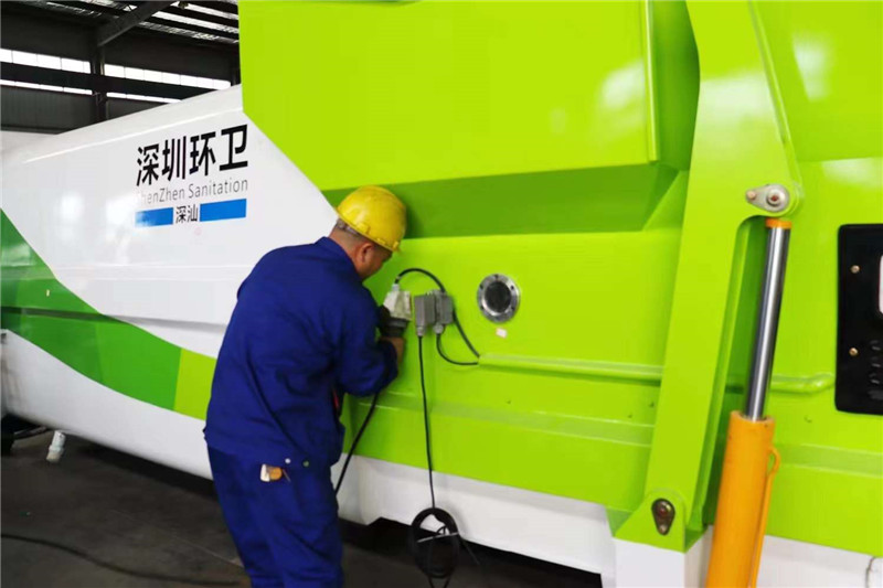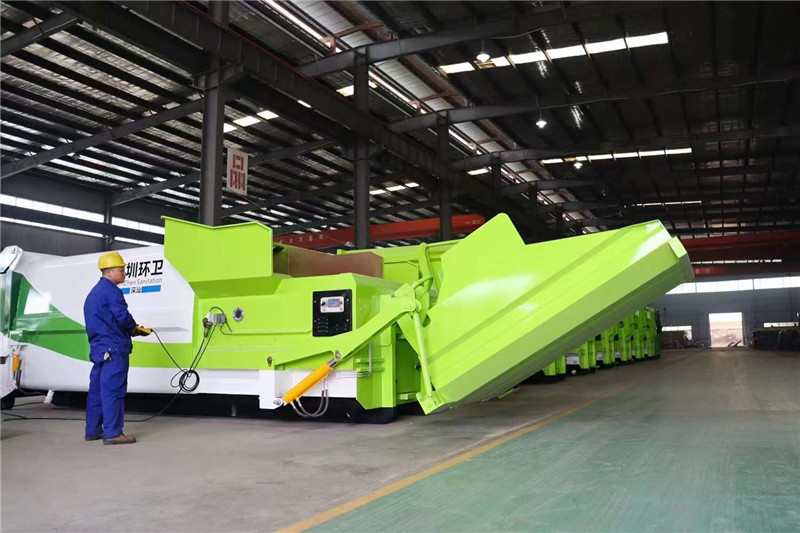 發(fā)往深圳環(huán)衛(wèi)8-20立方移動(dòng)式壓縮垃圾箱,顏色隨心,尺寸定制。
