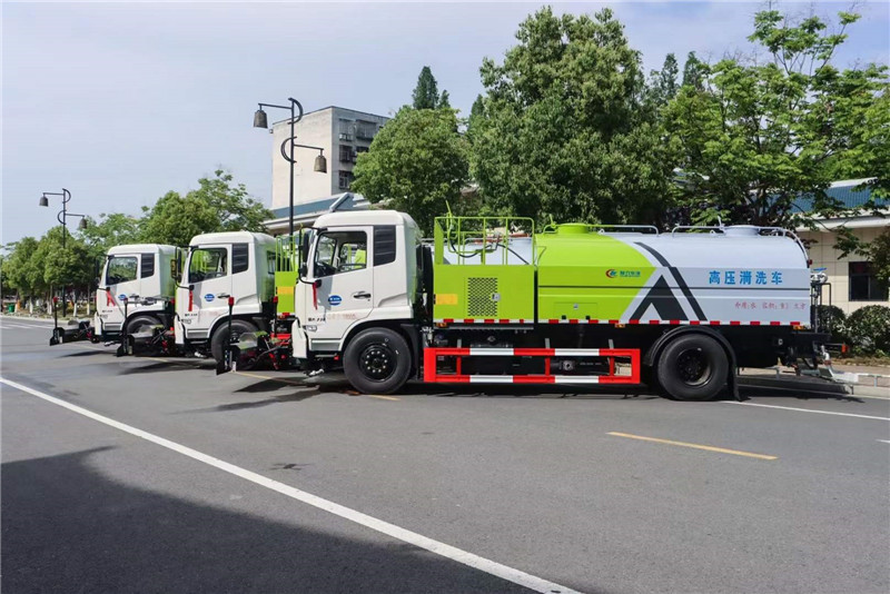 10方天錦路面高壓清洗車,路面養護系列之東風天錦清洗車現車作業展示,10方水,江鈴87馬力副機,進口高壓水泵,前置高壓清洗支架,中置全套灑水功能(左右對沖、后灑、高炮等),高壓后噴霧裝置可降塵、降溫凋節空氣溫度;頂部高壓水槍及弧型噴桿等!程力高壓清洗車一車多用,環保利器!