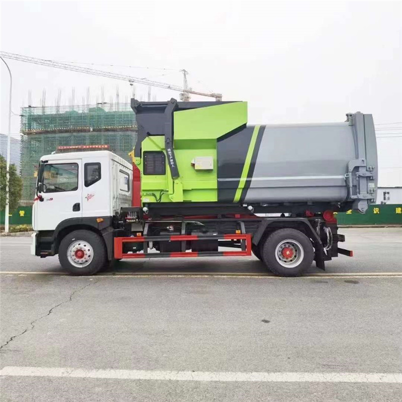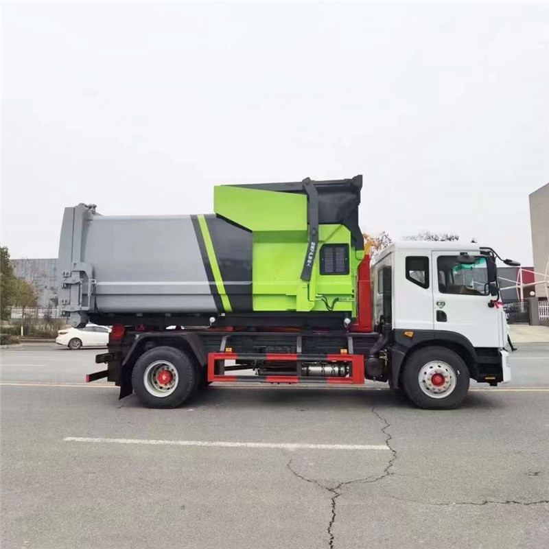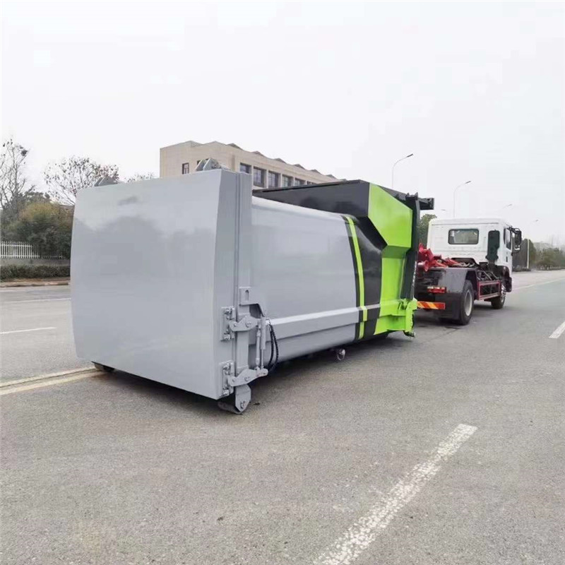 程力廠家12方移動壓縮垃圾箱,搭配東風4500mm軸距D9勾臂車使用,箱體采用Q345高強度錳鋼板焊接而成,箱體內(nèi)腔無骨架圓弧曲線設計,外形美觀,科學合理,鴻輝動力單元、液壓油缸,PLC電控系統(tǒng),電子顯示屏,可直觀顯示箱體壓滿程度及故障診斷,操作簡單便捷,后門液壓鎖緊無泄漏避免垃圾二次污染。可移動10噸垃圾箱
