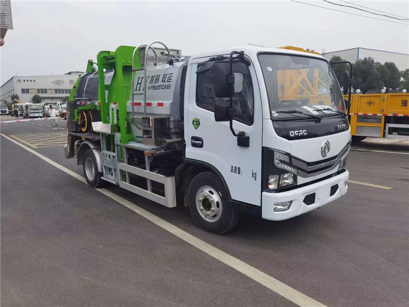 程力專汽東風多利卡6方餐廚垃圾車,罐體容積6方,方形箱體,材料采用優質Q235碳鋼板材,進口海德液壓閥組,干濕分離功能,帶清洗功能,側掛標準120L/240L塑料垃圾桶,進料口蓋氣動開關,液壓后蓋。箱體內部帶液壓推鏟卸料(不帶舉升功能),作業照明燈,不銹鋼進料口,鋁合金側防護,不銹鋼推板,不銹鋼干濕分離。