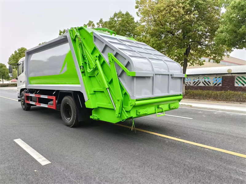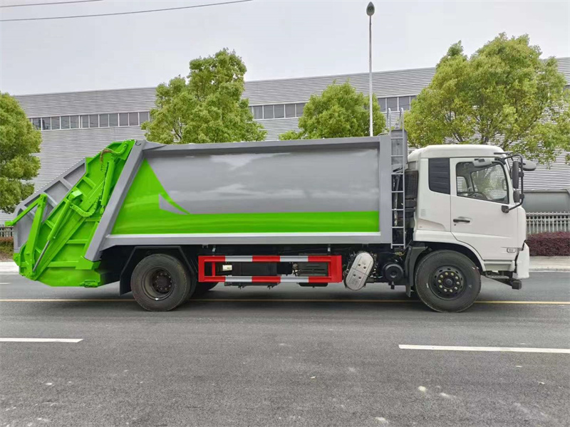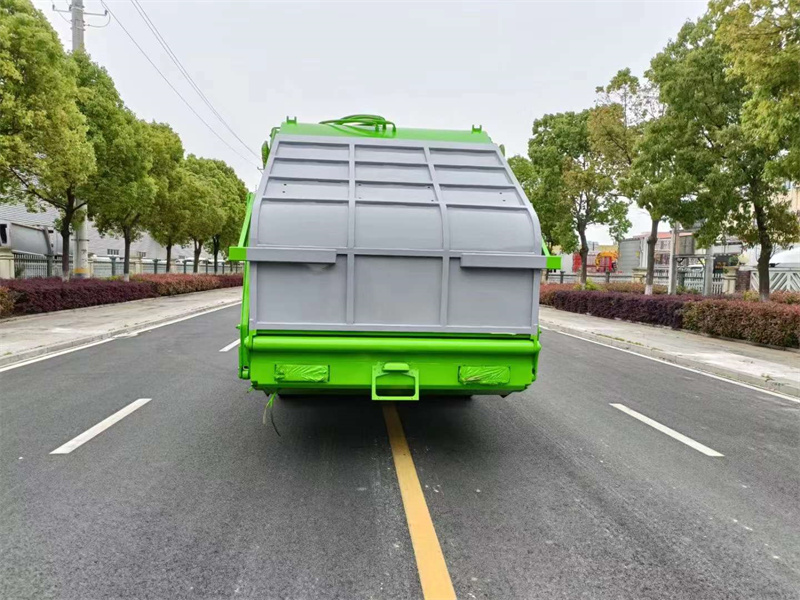 上裝配置:邊5底6,容積18個方,雙聯泵,雙泵合流大流量氣控多路閥,標配壓實閥,可遙控操作,后翻轉全密封大斗,斗內可掛3個240L塑料垃圾桶。