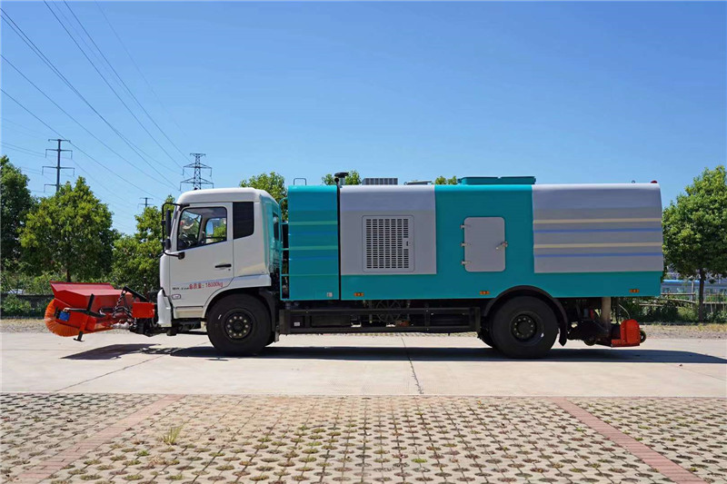 程力道路清掃車生產廠家研發的新品東風天錦后置滾掃吸塵車前端加裝3米雪滾,平時清掃路面,到了雪季除雪。一臺吸塵車也可當鏟雪車使用,節省用車成本。