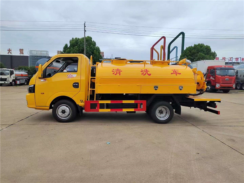 東風途逸可進地下室的清洗吸糞車(3.5方),整車高度不超2米,國六全柴95馬力發動機,動力強勁,備品孚135流量高壓泵,SK-6全密封水循環泵,另一臺裝配5T真空泵。