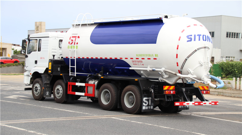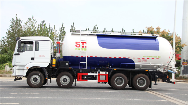 陜汽德龍8*4國六舉升式干混砂漿運輸車整車型號為四通牌STD5319GGHSX6型干混砂漿運輸車